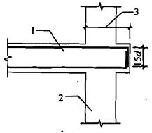 图 7.1.6 楼面梁伸出 1—楼面梁;2—剪力墙;3—楼面梁钢筋锚固水平投影长度 6 暗柱或扶壁柱应设置箍筋,箍筋直径,一、二、三级时不应小于 8mm,四级及非抗震时不应小于 6mm,且均不应小于纵向钢筋直径的 1/4;箍筋间距,一、二、三级时不应大于 150mm,四级及非抗震时不应大于 200mm。 7.1.7 当墙肢的截面高度与厚度之比不大于 4 时,宜按框架柱进行截面设计。 7.1.8 抗震设计时,高层建筑结构不应全部采用短肢剪力墙;B 级高度高层建筑以及抗震设防烈度为 9 度的 a 级高度高层建筑,不宜布置短肢剪力墙,不应采用具有较多短肢剪力墙的剪力墙结构。当采用具有较多短肢剪力墙的剪力墙结构时,应符合下列规定: 1 在规定的水平地震作用下,短肢剪力墙承担的底部倾覆力矩不宜大于结构底部总地震倾覆力矩的 50%; 2 房屋适用高度应比本规程表 3.3.1-1 规定的剪力墙结构的最大适用高度适当降低,7 度、8 度(0.2g)和 8 度(0.3g)时分别不应大于 100m、80m 和 60m。