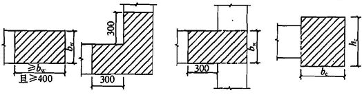 图 7.2.15 剪力墙的约束边缘构件 2 剪力墙约束边缘构件阴影部分(图 7.2.15)的竖向钢筋除应满足正截面受压(受拉)承载力计算要求外,其配筋率一、二、三级时分别不应小于 1.2%、1.0%和1.0%,并分别不应少于 8φ16、6φ16 和 6φ14 的钢筋(φ 表示钢筋直径); 3 约束边缘构件内箍筋或拉筋沿竖向的间距,一级不宜大于 100mm,二、三级不宜大于 150mm;箍筋、拉筋沿水平方向的肢距不宜大于 300mm,不应大于竖向钢筋间距的 2 倍。 7.2.16 剪力墙构造边缘构件的范围宜按图 7.2.16 中阴影部分采用,其最小配筋应满足表 7.2.16 的规定,并应符合下列规定: 1 竖向配筋应满足正截面受压(受拉)承载力的要求; 2 当端柱承受集中荷载时,其竖向钢筋、箍筋直径和间距应满足框架柱的相应要求; 3 箍筋、拉筋沿水平方向的肢距不宜大于 300mm,不应大于竖向钢筋间距的2倍; 4 抗震设计时,对于连体结构、错层结构以及 B 级高度高层建筑结构中的剪力墙(筒体),其构造边缘构件的最小配筋应符合下列要求: