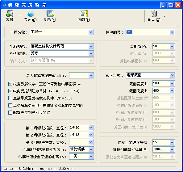裂 缝 宽 度 验 算 (GB 50010-2010)、(GB 50069-2002)