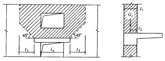 图 7.4.7 雨篷的抗倾覆荷载 Gr——抗倾覆荷载;l1——墙厚;l2——Gr 距墙外边缘的距离